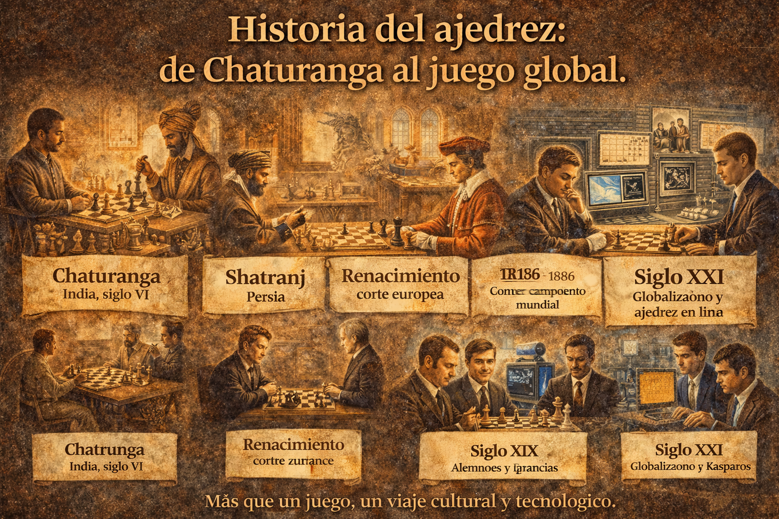 La historia del ajedrez es un mapa de la humanidad: intercambio cultural, adaptación y progreso tecnológico. Desde el Chaturanga en la India hasta el ajedrez en línea del siglo XXI, el tablero ha sido espejo de guerra, filosofía y arte.